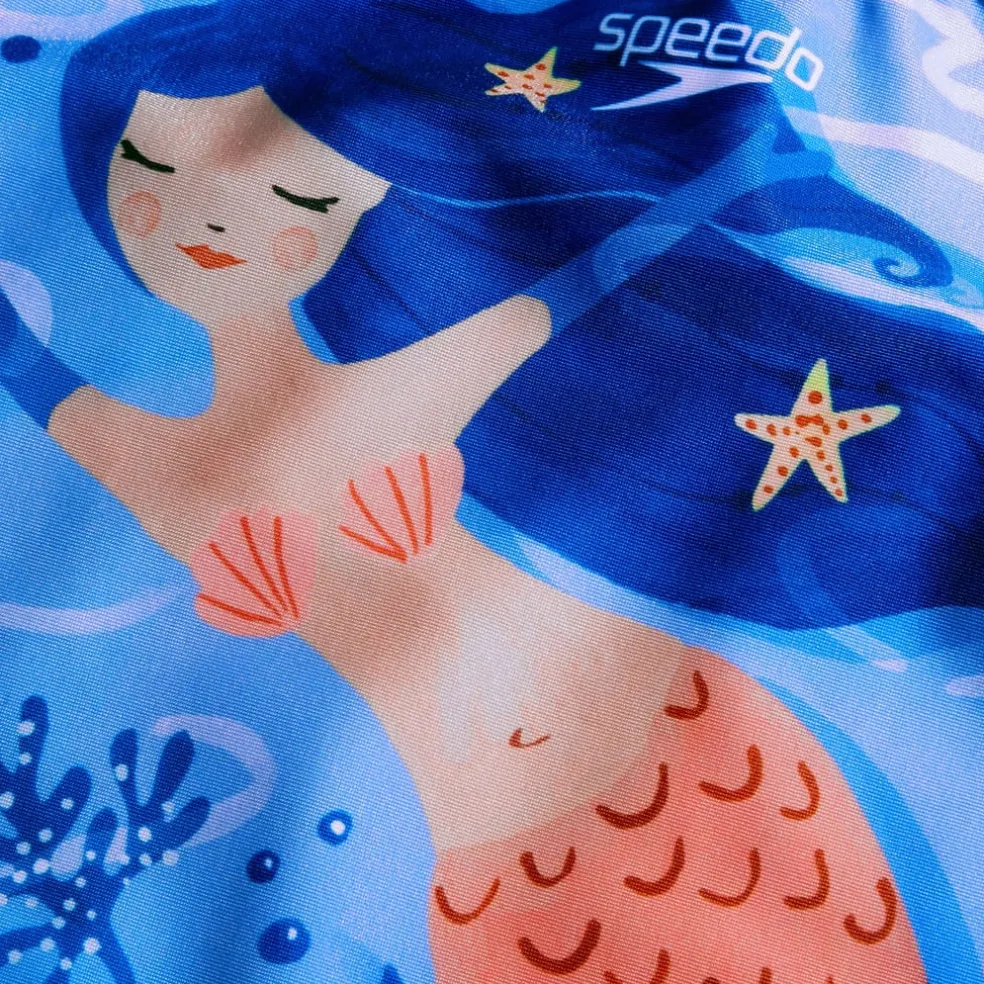 The Speedo Girls Digital Printed swimsuit features a captivating mermaid scene, this delightful blue infant swimsuit is ideal for fun times in the pool and on the beach. Comfortable in and out of the water, the racerback design means your little one’s straps don’t slip around when they’re splashing about.