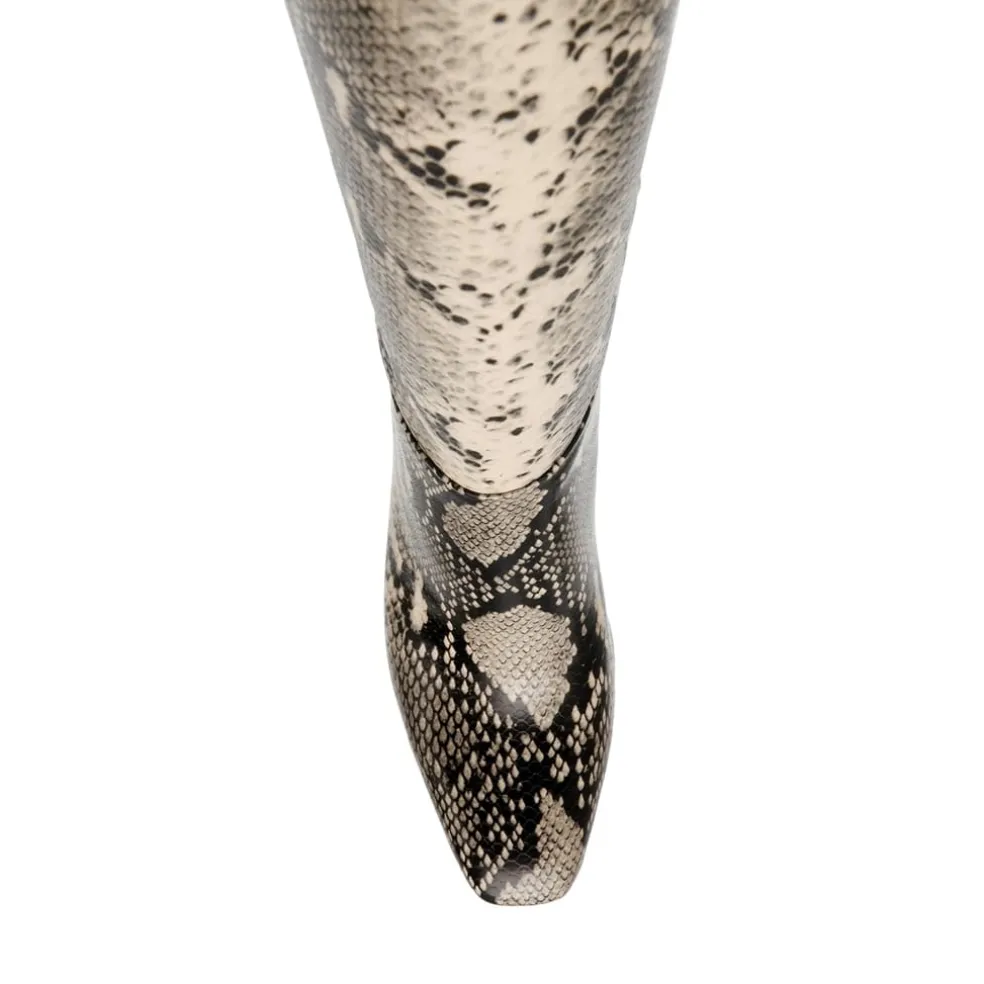 Discover the distinctive style of Steve Madden with these round-toe leather boots. The snake skin textured material adds a unique element to your footwear collection. Crafted for those who appreciate quality and design, these boots seamlessly blend fashion with functionality, making them a standout choice for any wardrobe.