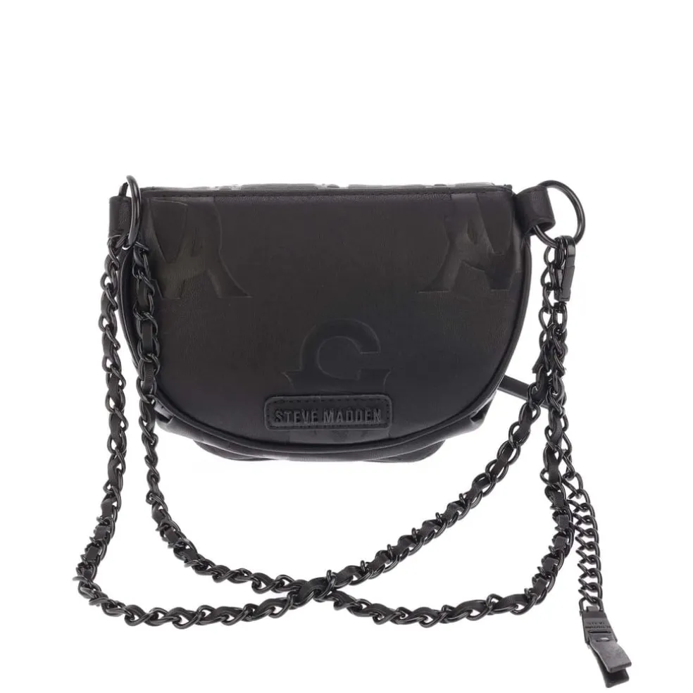 Man-made material.Zipper fastening.Black shoulder strap and multiple chains.Steve Madden branding.