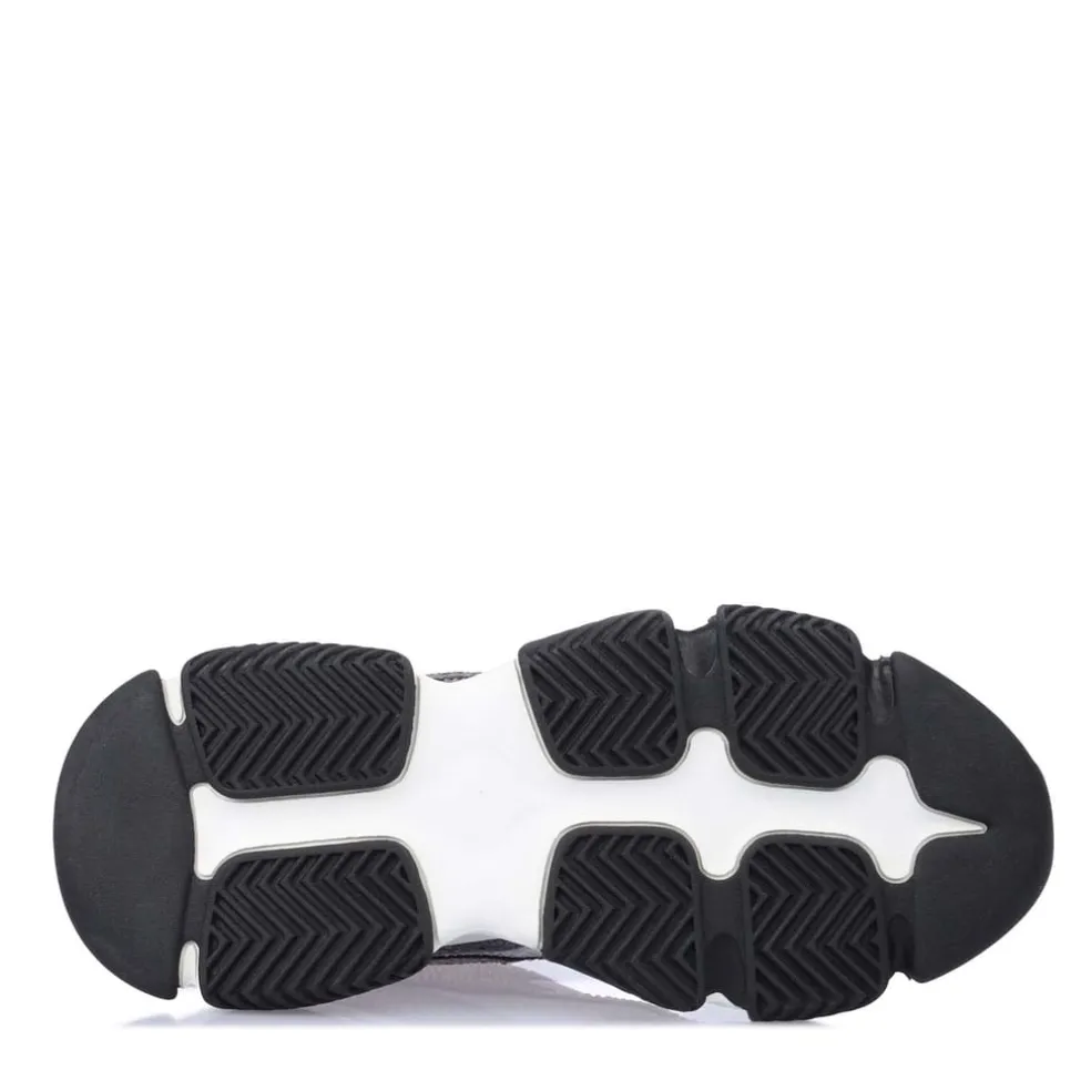 Fabric upper.Lace up fastening.Monochrome look and extra chunky sole.Silver diamantes.Rubber sole.
