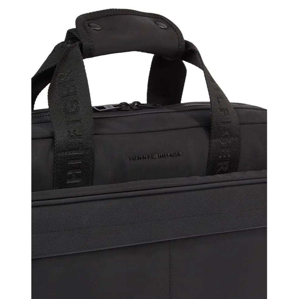Tommy Hilfiger Laptop Handbag with Detachable Strap in Black