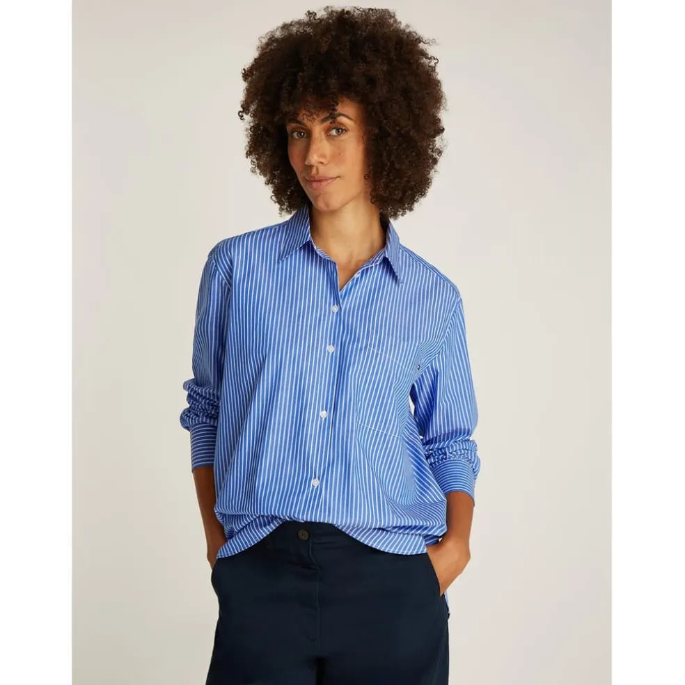 Tommy Hilfiger Poplin Relaxed Fit Long Sleeve Shirt in Blue