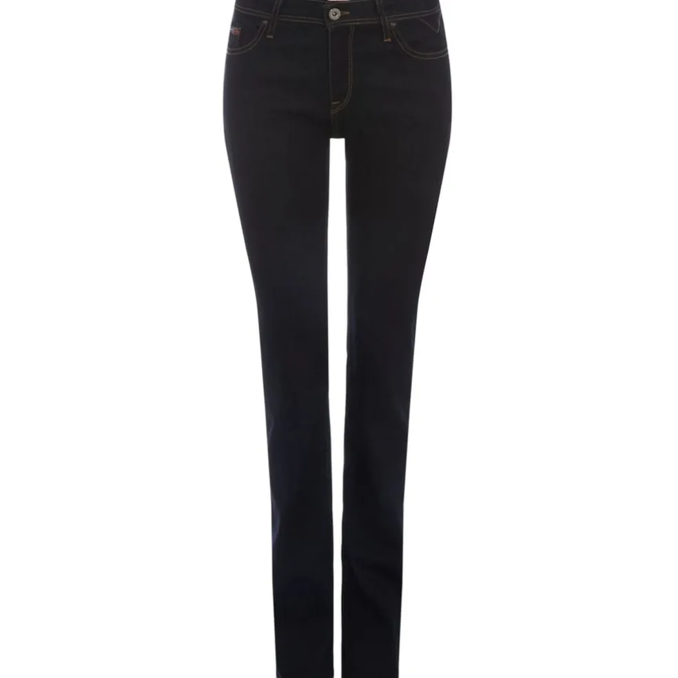 Introduce a classic addition to your separates repertoire with these straight fit Sandy jeans by Tommy Hilfiger. Crafted from cotton blend fabric, these jeans feature button and zip fly fastening, five-pockets and belt loops for maximum comfort. Emblazoned with the signature brand labelling to the rear, these jeans compliment well on a sweatshirt and trainers for an elegant outfit.