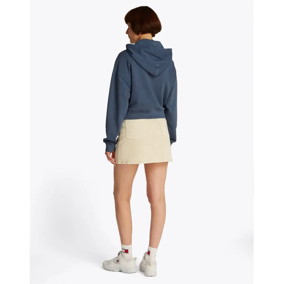 Tommy Jeans Varsity Cropped Hooded Relaxed Sweatshirt in Blue