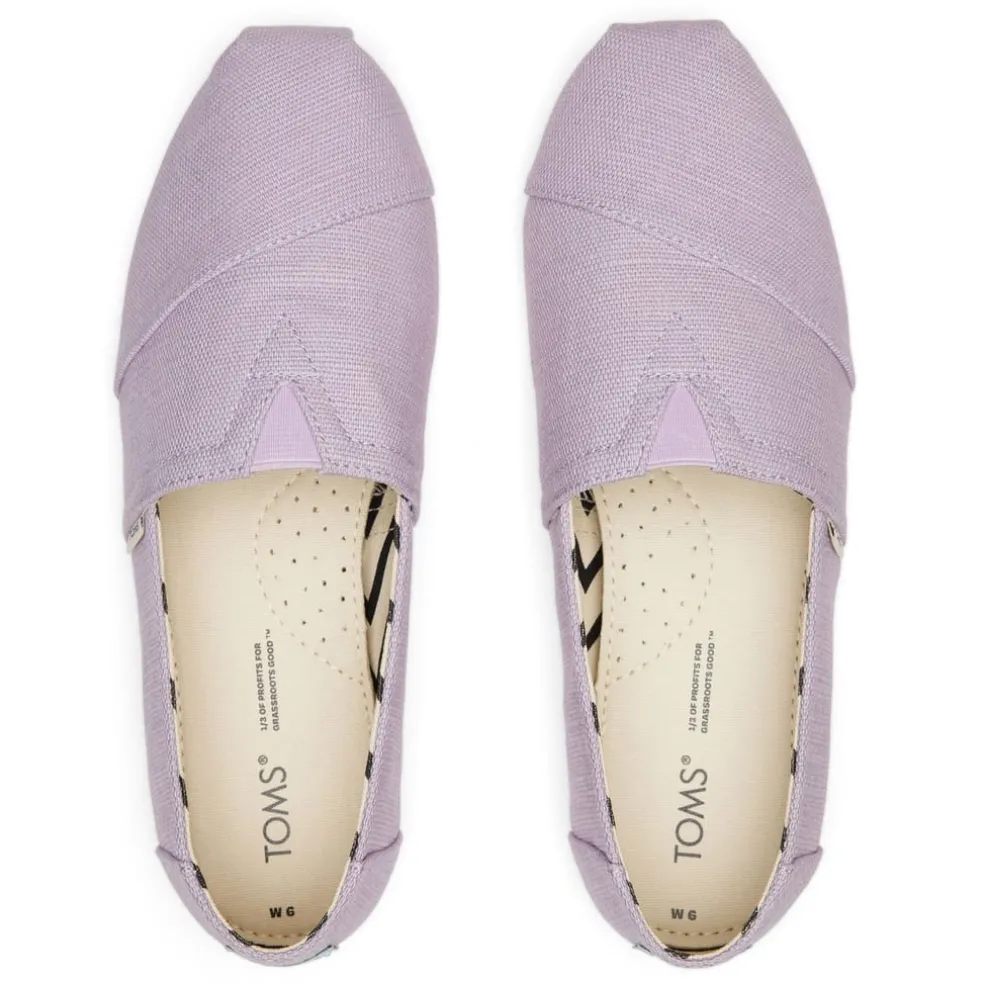 Textile upper, canvas footbed, TOMS signature CloudBound soles for extra comfort, breathability and traction removable and hand washable. OrthoLite Eco LT hybrid insole for lightweight cushioning, made with plant-derived and recycled materials. Elastic gore for easy fit