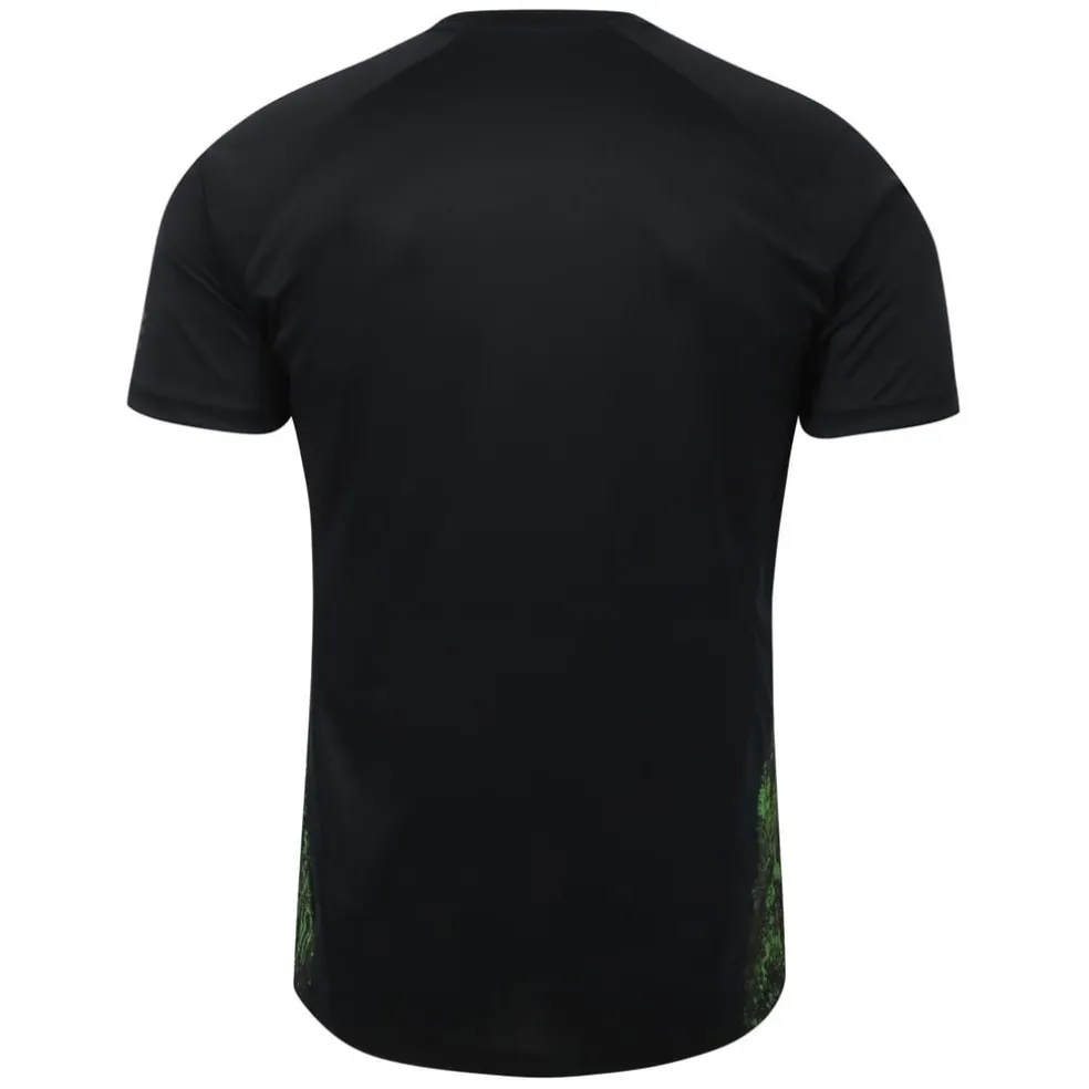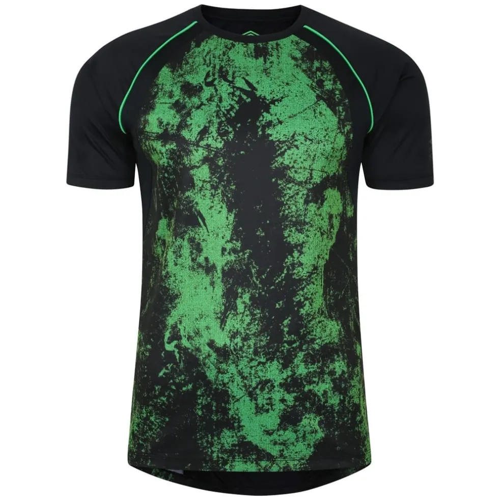 This Umbro t-shirt is designed for training, featuring a regular fit and raglan short sleeves for enhanced movement. The abstract pattern adds a stylish touch, while the crew neck ensures comfort during performance activities. A perfect choice for those seeking functionality and design in their athletic wear.