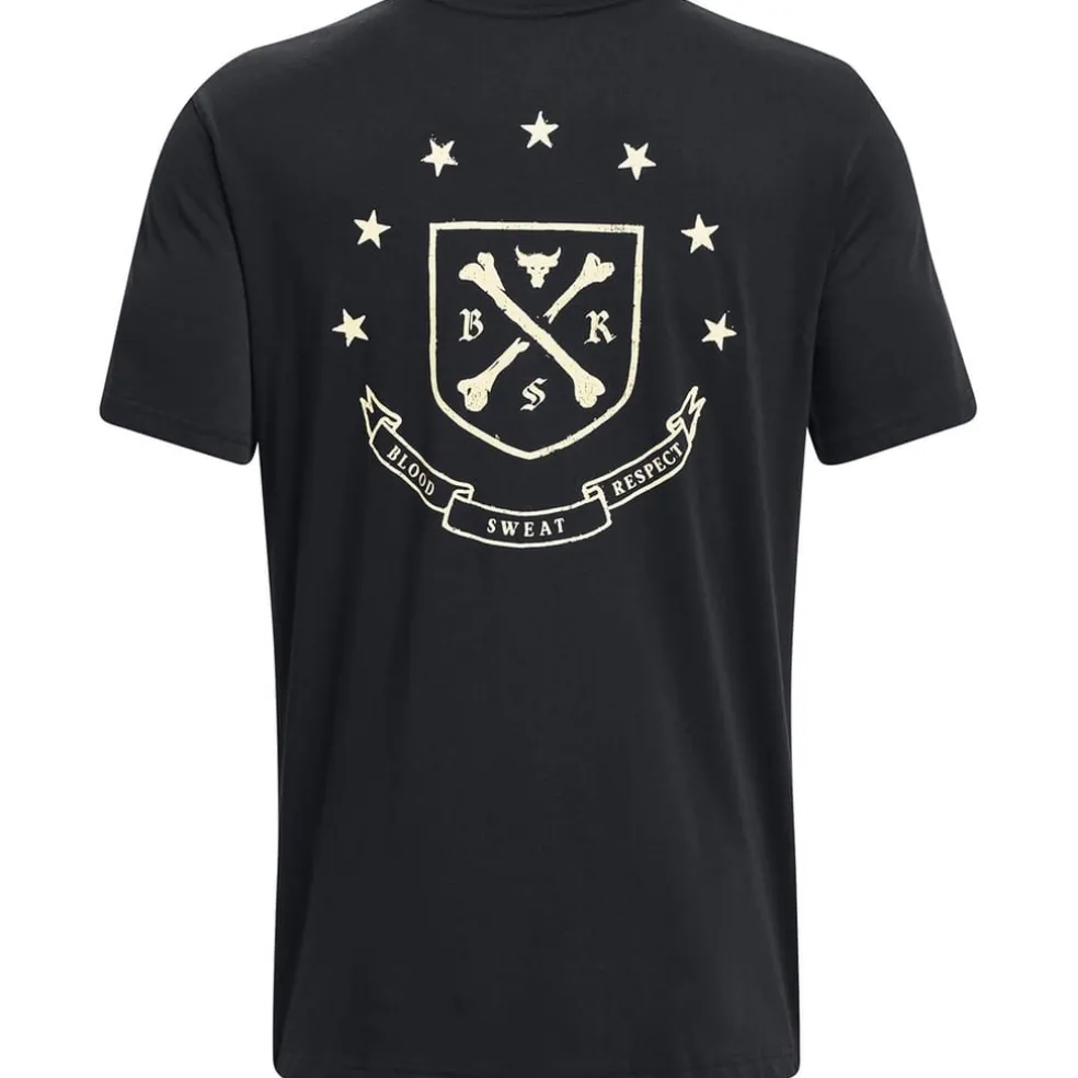 – Designed in a solid colour with a logo patch at the hem adding an authentic touch and writing across the front. However, the main feature is the graphic print on the back offering an eye-catching visual appeal. Whether hitting the gym or pushing your limits outdoors, the Under Armour Project Rock T-shirt is the perfect companion for every challenge you conquer. Pair with shorts and trainers for a complete sporting appeal.