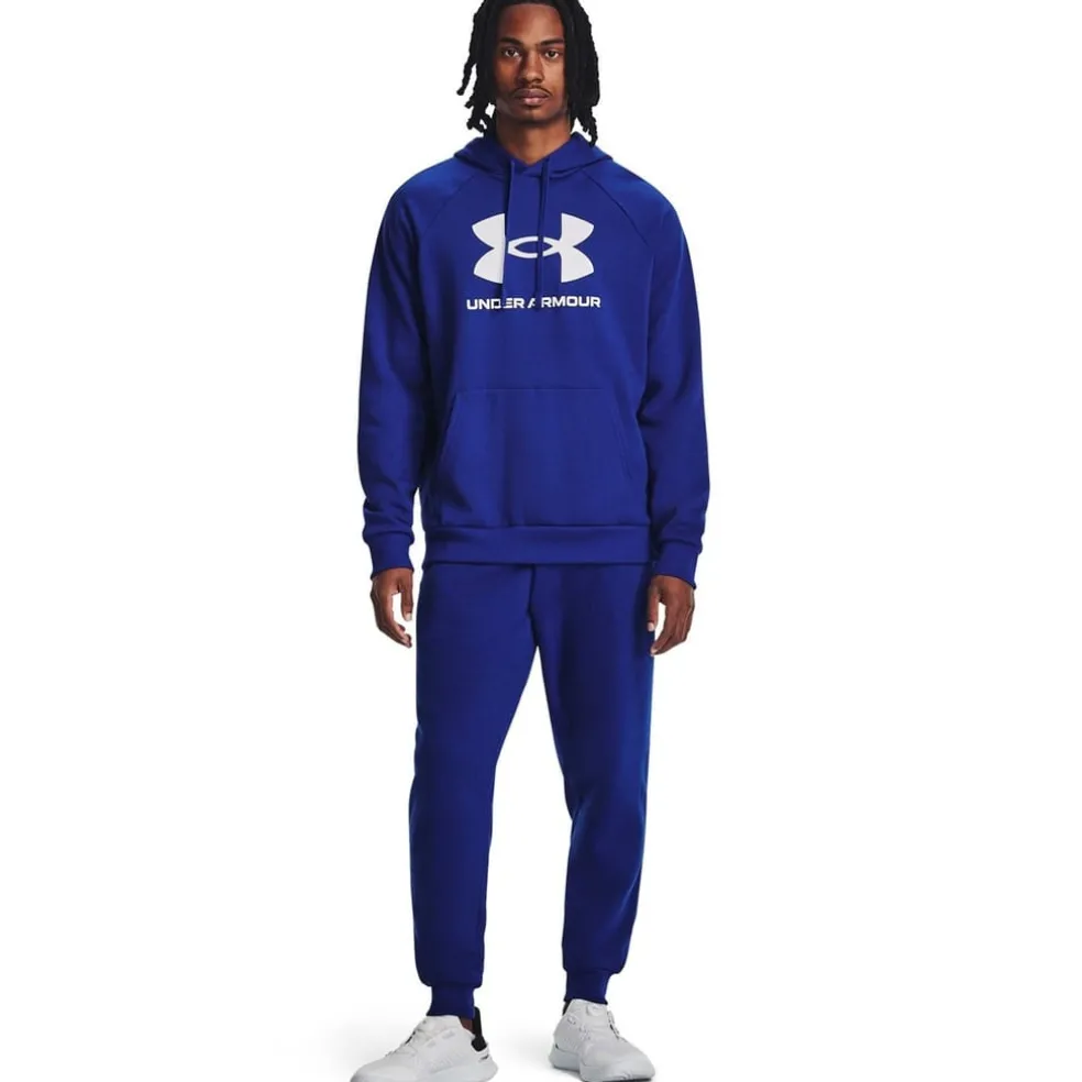 Keep things casual with the Under Armour Rival Tracksuit Bottoms. Crafted with an elasticated waistband and external drawstring tie, these bottoms offer a super secure and comfortable fit. Design is complete with a brushed fleecy lining, tapered leg with elasticated ankle cuffs, two open side pockets and a rear snap fastening pockets.