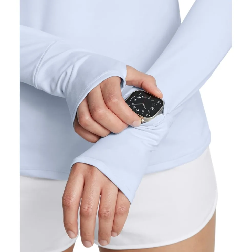 – Built-in thumbholes help keep sleeves in place with watch opening on left wrist for quick & easily access