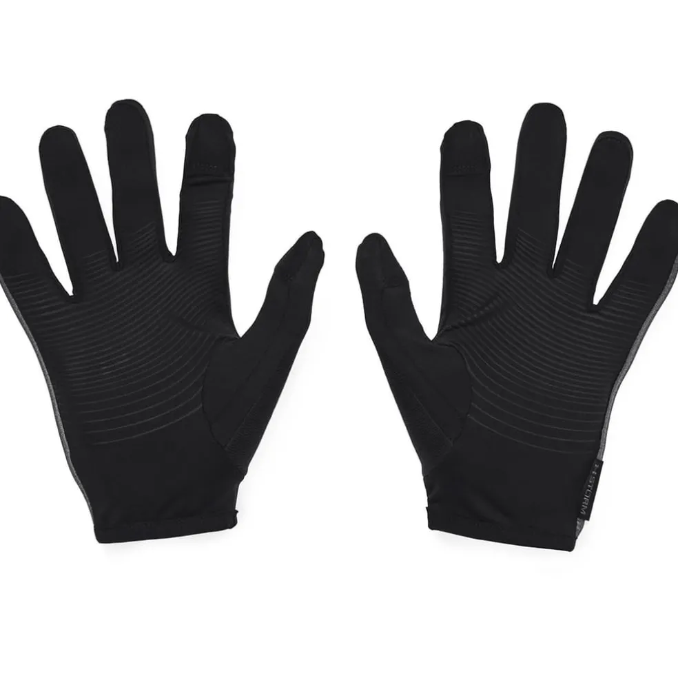 Like a baselayer for your hands. They’re form-fitting, light and stretchy, with the right warmth when it’s cool out—or wear them underneath heavier gloves when temps really plunge. UA Storm technology repels water without sacrificing breathability and the thin, fitted liner gloves can be worn on their own or as a first layer. Shorter cuff design so you can easily wear & see your smart watch while running with Tech Touch print on thumbs & fingers allow you to use touch screen devices without taking your gloves off. Double-layer ColdGear® knit material for added warmth. It also has print on palm for added grip.