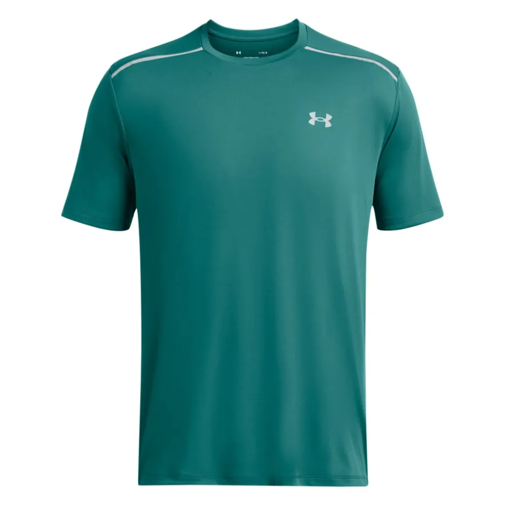 Crewneck.Short sleeves.UA reflective straps on the shoulders.UA logo on the chest and on the reverse of the neck.Reflective design.Ultra soft and quick drying.