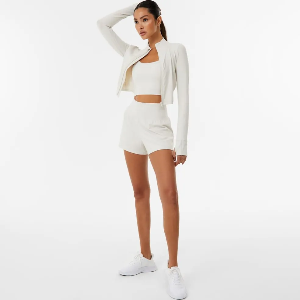 USA Pro Short High Neck Slim Fit Track Jacket in Cream