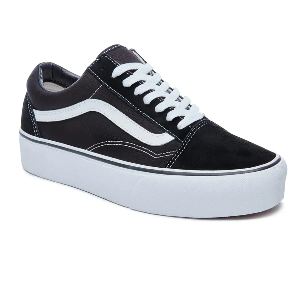 – Boasting padded collars for support and flexibility, the platform’s signature rubber waffle soles provide added grip no matter the terrain. Featuring the iconic ‘Off The Wall’ logo on the heel, rock these with confidence, elevate your game and be the envy of all around you with the iconic Vans Old Skool Platform shoes.