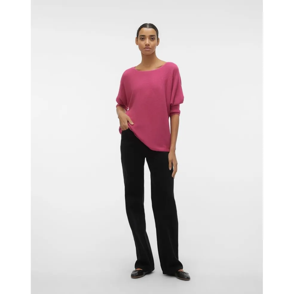This Vero Moda sweater offers a relaxed fit and features a boat neck for a stylish look. With three-quarter sleeves and ribbed cuffs, it combines comfort with contemporary fashion. Perfect for elevating your wardrobe with a versatile top.