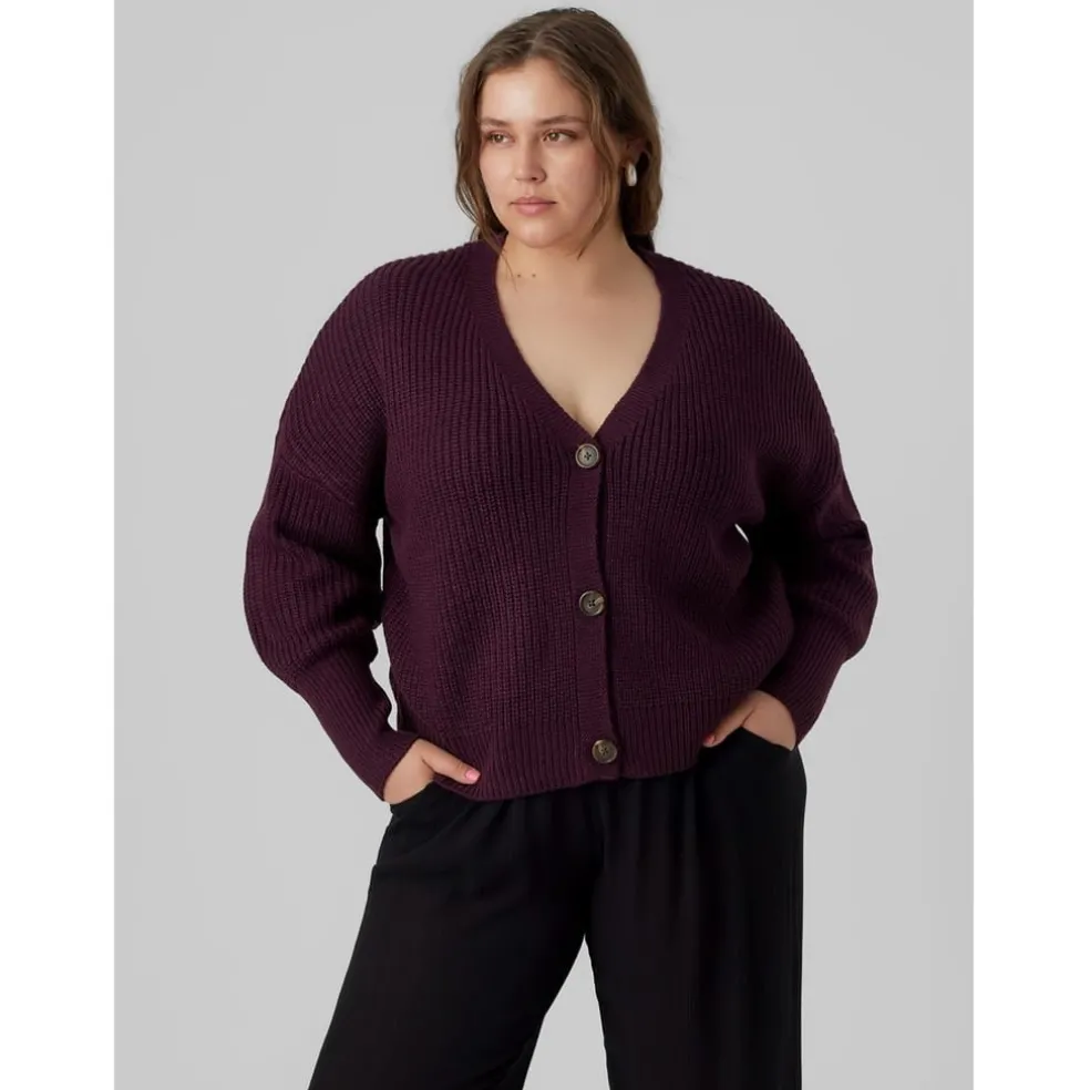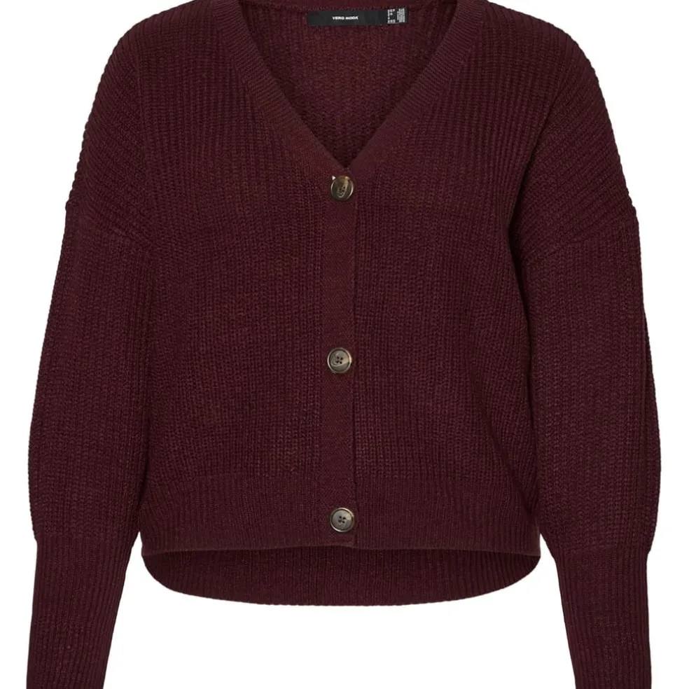 Discover comfort and style with the Vero Moda cardigan sweater, featuring a relaxed fit and drop shoulder design. This long sleeve piece includes a v-neck and button closure, offering a classic look with ribbed details throughout. The ribbed cuffs add a touch of texture, making it a versatile addition to your wardrobe.