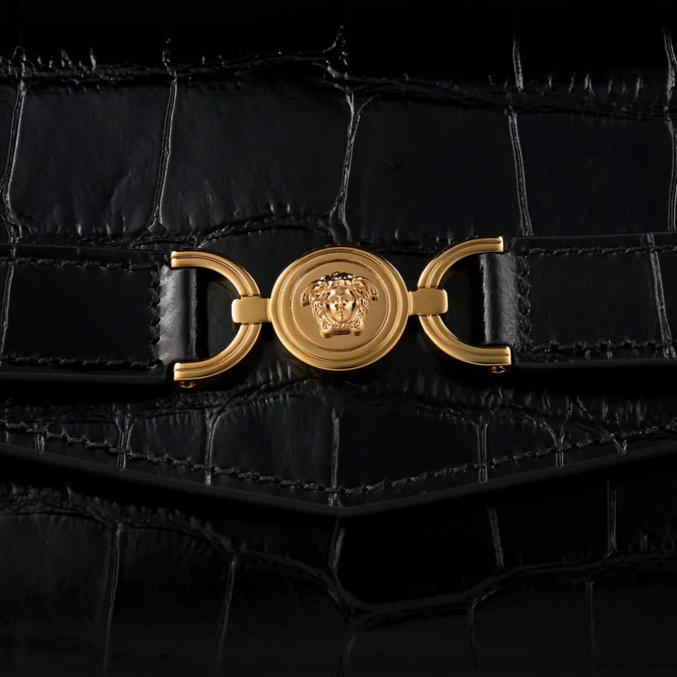 Be the first to review “Versace Mini Croc Effect Medusa Crossbody with Detachable Strap in Black” Cancel reply
