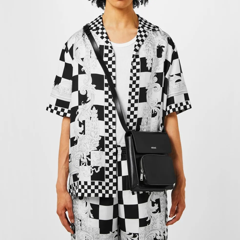 Versace Verti Messenger Bag with Detachable Strap in Black