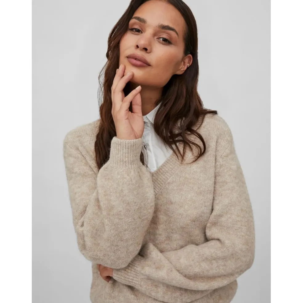Be the first to review “Vila Jamina V Neck Long Sleeve Relaxed Fit Sweater in Beige” Cancel reply