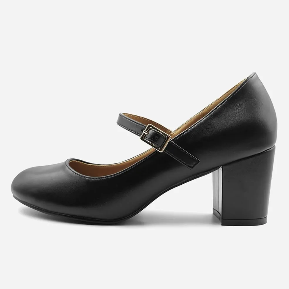 – Classic Mary Jane Design: The black faux leather material combined with the timeless Mary Jane style creates a chic and elegant look that never goes out of fashion.
