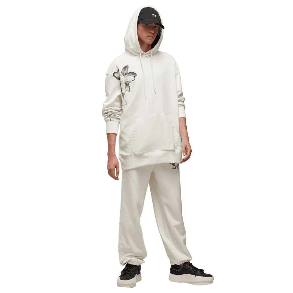 The Y-3 Graphic French Terry Hoodie blends essential everyday wear with graphic style. An abstract floral print sits on the chest and wraps the sleeve. Cotton French terry fabricates a relaxed build, and a kangaroo pocket emphasises laid-back comfort.