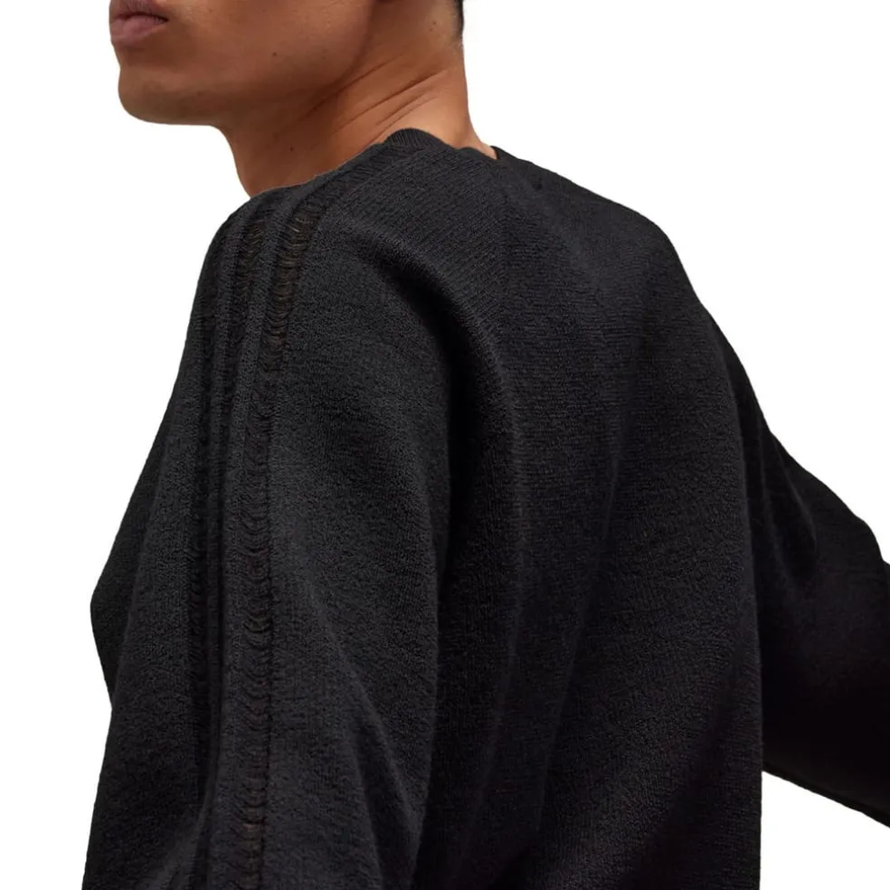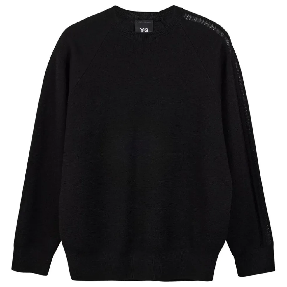A sophisticated exploration of sport heritage, the Y-3 Logo Knit Crew Sweatshirt is crafted from a soft, wool knit. On the left sleeve, the 3-Stripes are knit with loose stitches to suggest a transparent effect . A loose fit is paired with raglan sleeves to create a complete feeling of ease.