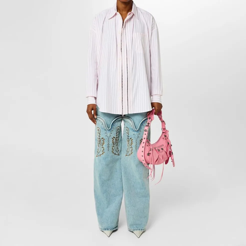 Embrace a new era of sophistication with the Y/Project Oversize Hook & Eye Placket Stripe Shirt, a captivating piece that reimagines the norms of traditional tailoring. Meticulously crafted from pure cotton, this shirt features an eye-catching stripe pattern that creates an effortlessly chic style. At the forefront of its unique design, the hook-and-eye placket presents an enticing twist, allowing for expanded styling options. Whether leaving a few hooks undone for an alluring glimpse of skin or securing the placket for a polished look, this shirt grants you the freedom to showcase your personal style.