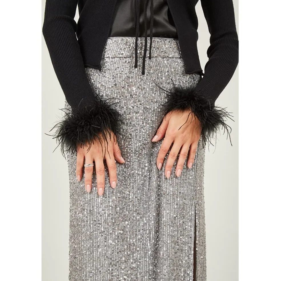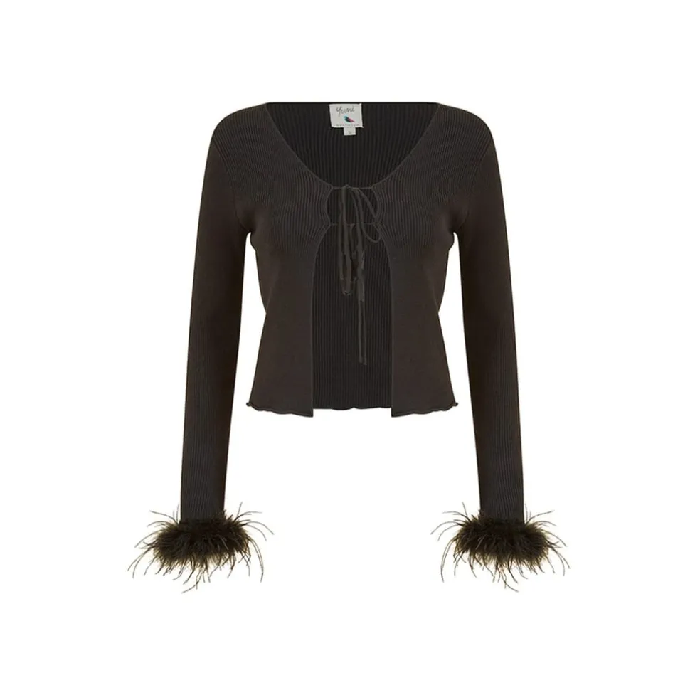 Be the first to review “Yumi Ribbed Bolero With Feather Cuffs in Black” Cancel reply