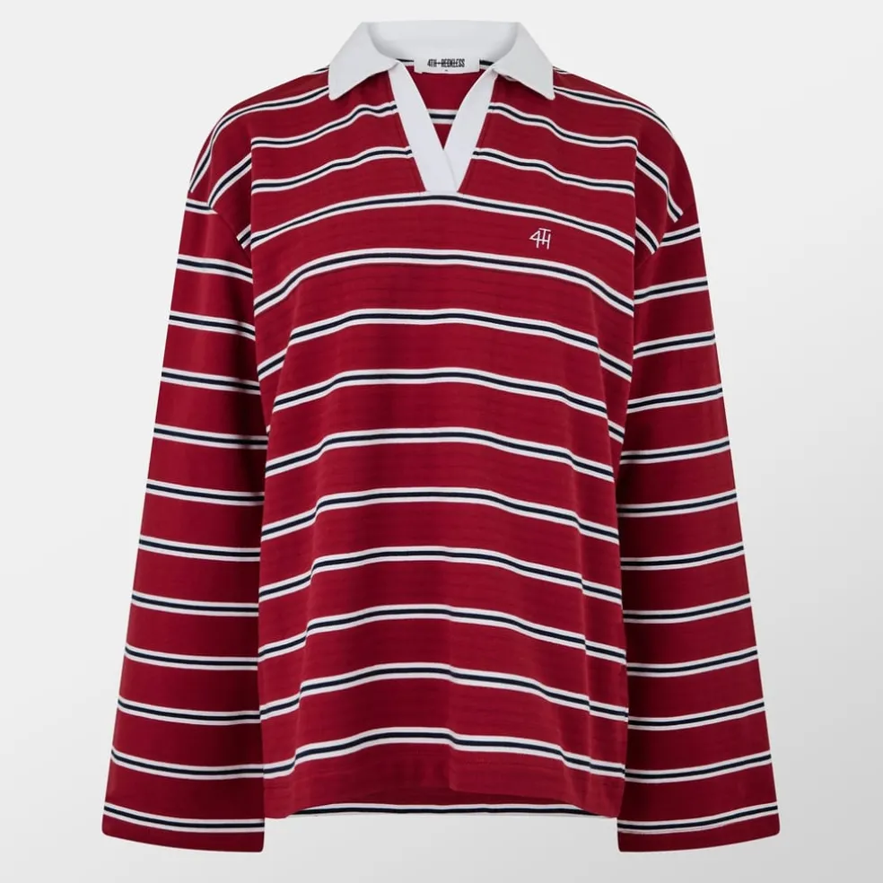 Lauren by Ralph Lauren Stripe Regular Fit Long Sleeve Shirt in Red