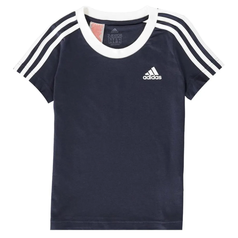 This adidas 3 Stripe T Shirt is crafted with short sleeves and a ribbed crew neckline for a classic look. It features elasticated hems for a comfortable fit and is a lightweight construction with the iconic three stripes to the shoulders. This t shirt is a solid colouring throughout designed with a signature logo printed to the chest and is complete with adidas branding.