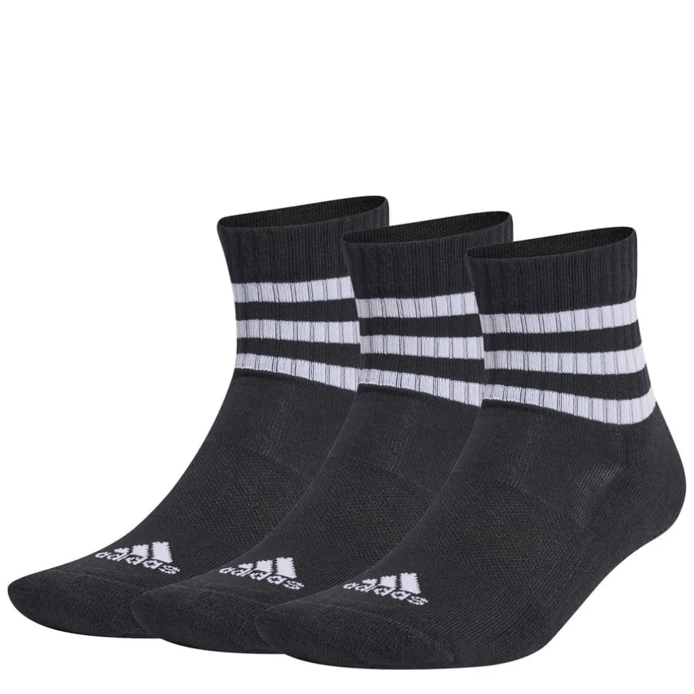 adidas 3 Stripes Cushioned Sportswear Mid Cut Socks 3 Pairs in Black