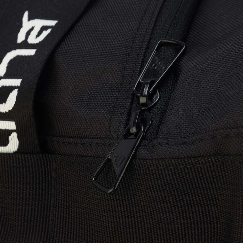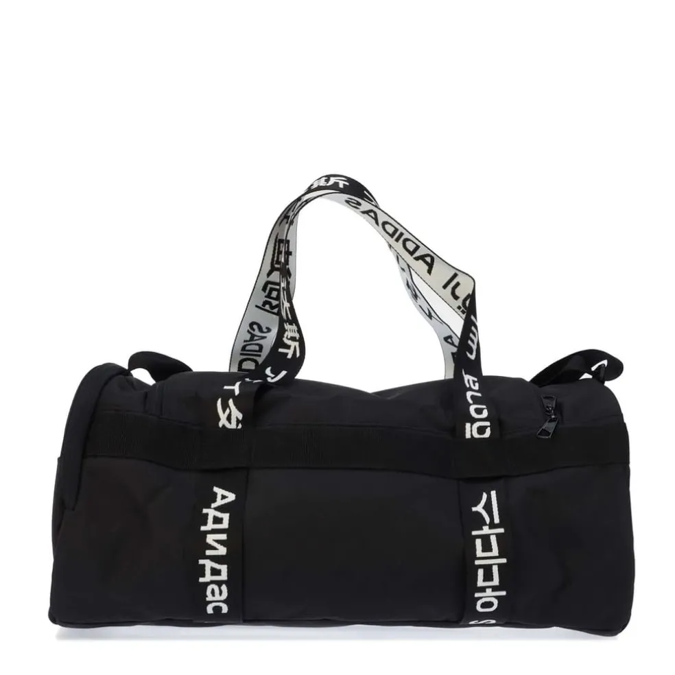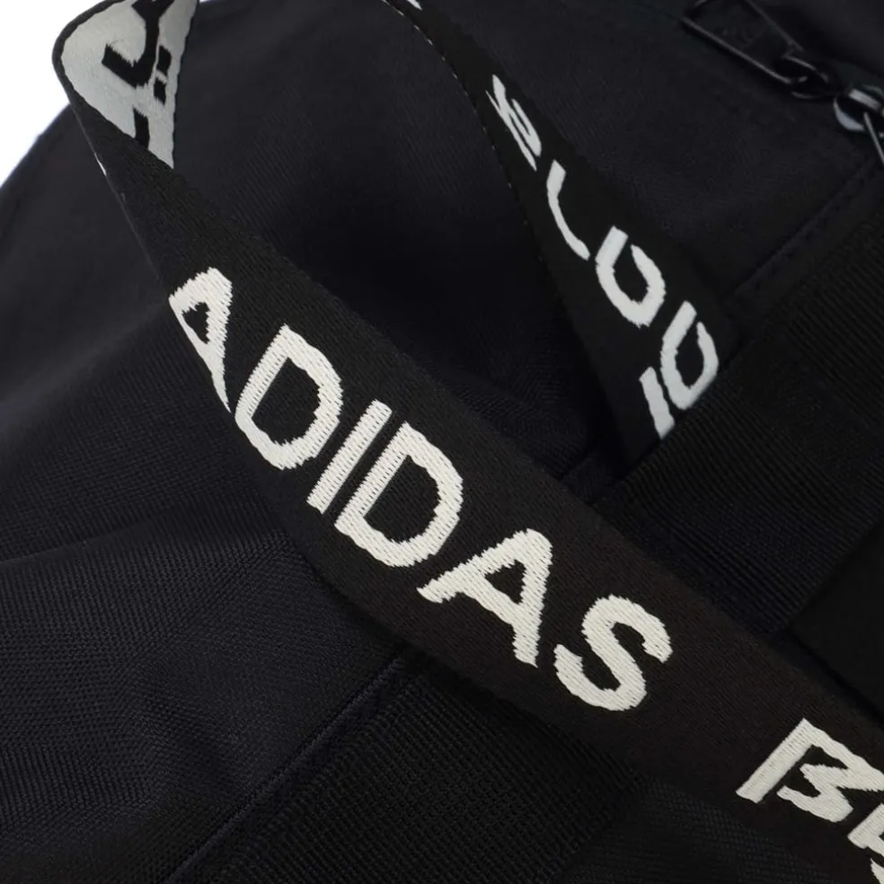 Small can be powerful. That’s a fact that’s been decisively proven by gymnasts, wrestlers and this compact adidas duffel. Hold your workout gear and shoes in a sturdy bag that carries distinctive adidas style and a large measure of athletic pride.A small, sturdy duffel bag with bold branding on the webbing tape handles.Small duffel bagSide zip pocketZip main compartment with internal pocketsVentilated external shoe compartmentDual carry handles and a shoulder strapDimensions: 23 cm x 23 cm x 48 cmVolume: 21.5 L100% recycled polyester plain weave