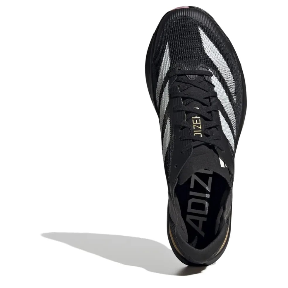 – The featherlight mesh upper along with the Adizero sling launch locks in your foot during those powerful strides.