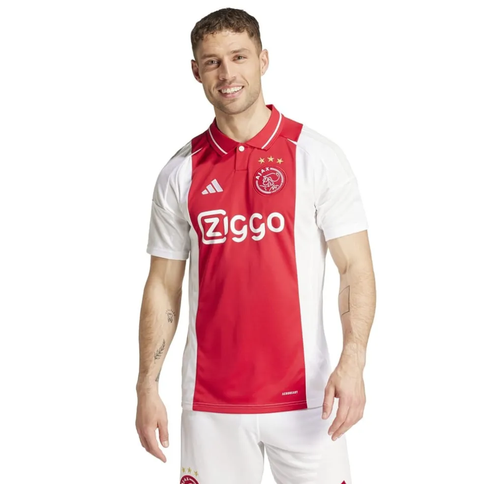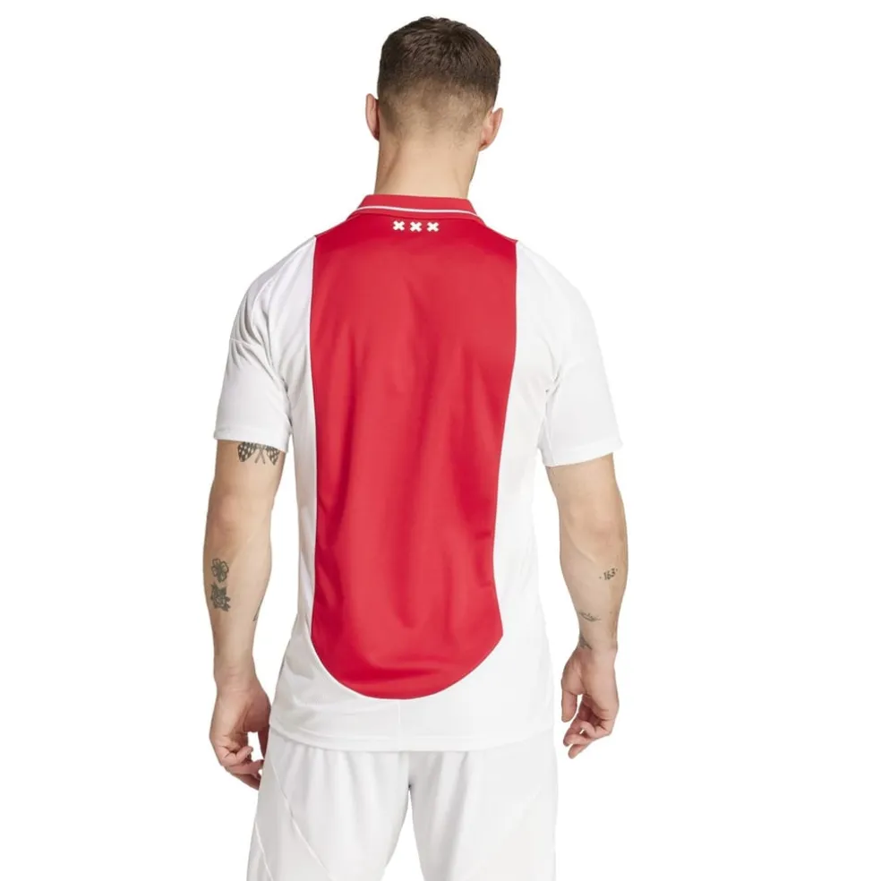 – With a slim fit, ribbed polo neckline, and short sleeves, this shirt is both functional and stylish. The team’s classic red and white colourway and signature 3-stripe branding on the sleeves make this shirt stand out from the competition while the woven team crest and embroidered brand logo on the chest is a nod to the rich heritage of Ajax Amsterdam.
