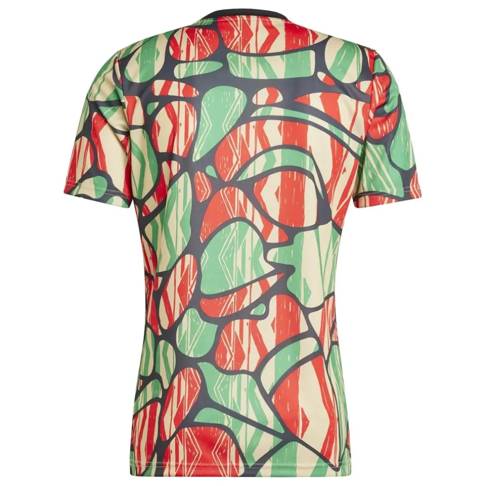 – In collaboration with Labrum London, the captivating all-over pattern pays homage to the West African influences—immersing you in rich, vibrant culture. The woven team crest and the brand logo embroidered on the chest showcase your unwavering loyalty and unbreakable spirit. Designed to inspire greatness, this shirt is perfect for game days, training sessions, or everyday fashion.