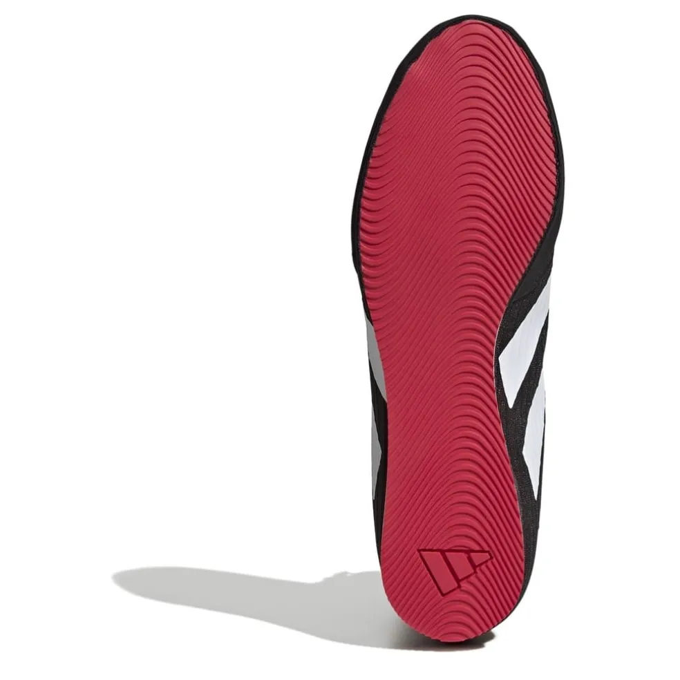 Tried and trusted. No stranger to the gym or the ring, adidas Box Hog boxing shoes keep your intensity high thanks to their breathable mesh upper and inner reinforcements. A die-cut EVA midsole wedge supports your midfoot for a stable stance. Underneath, the multidirectional outsole grips the mat for lightning-quick footwork.