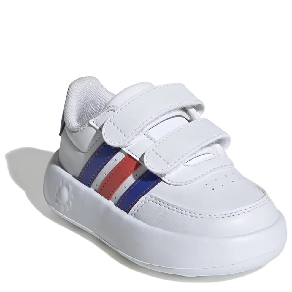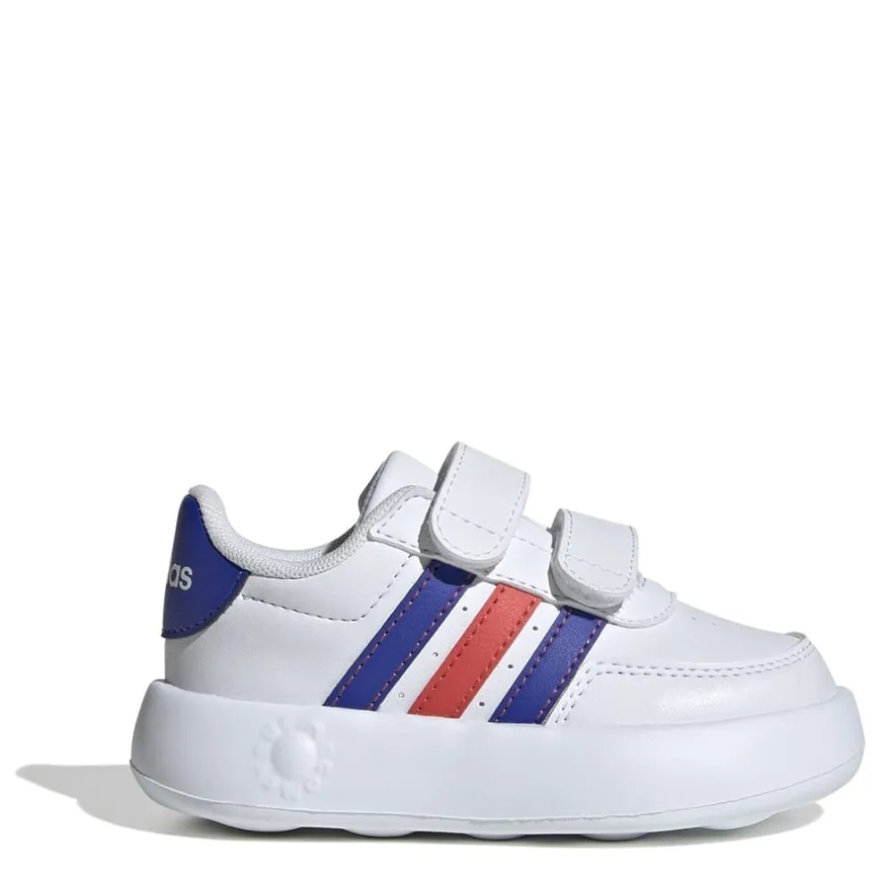 Elevate your little one’s footwear with comfort and style with the adidas Breaknet 2.0 Shoes Infants – the ultimate footwear for your little trendsetters! Crafted from a synthetic upper, this pair showcase a classic round-toe trainer design. Highlighting a regular fit ensures a snug and secure feel, perfect for tiny feet on the move. The hook-and-loop closure provides convenience for quick adjustments and easy taking on or off. The textile lining keeps them cosy, making every step a comfortable delight. With a one-piece EVA midsole and outsole, these shoes provide superior cushioning and support, keeping them steady through all their playful adventures. Completed in a solid white colouring, the iconic stripe design adorns the side in red and blue, and a blue heel to the rear offers a more dynamic look. Signed off with the iconic brand name in sleek white lettering, gives the pair a more sporty finish.