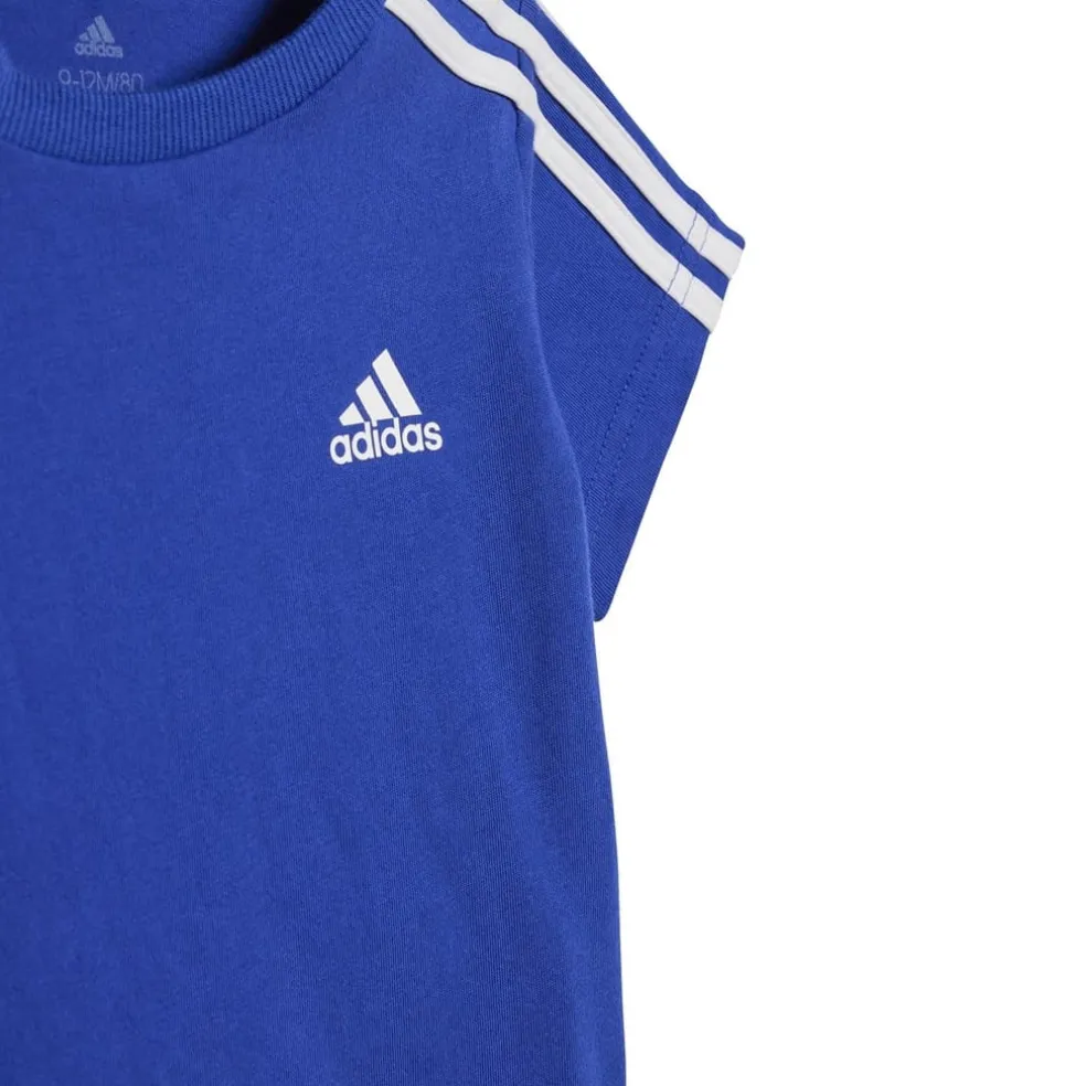 – Featuring short sleeves and a ribbed crew neckline with convenient poppers, this t-shirt makes for effortless dressing, ensuring that mornings are as stress-free as possible. Complete with iconic adidas branding proudly adorned on both the top and shorts, your child’s future athletic spirit is showcased. Whether it’s a playdate or a family outing, the adidas Essentials Sport Set is the perfect choice to accompany your little ones’ everyday adventures. 100% cotton. Machine wash cold according to care label instructions.