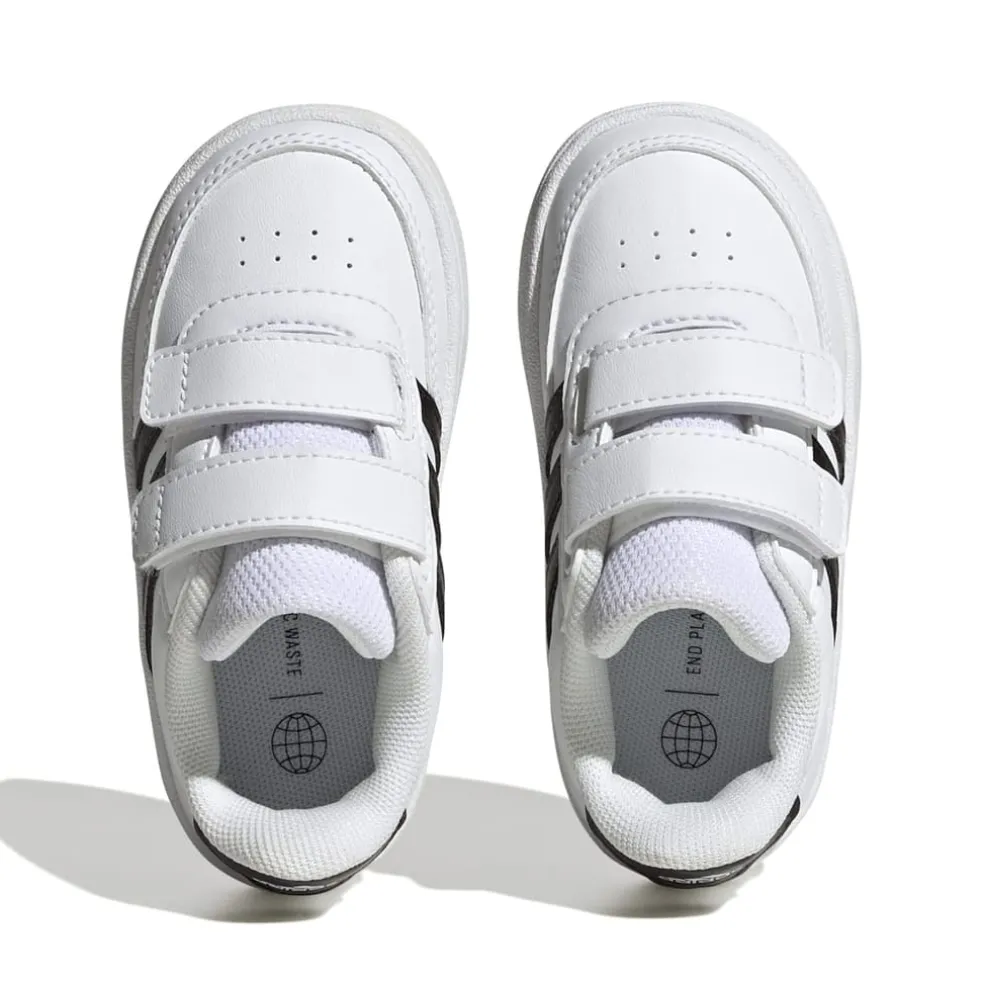 “Game, set, match. These infants’ adidas shoes take design cues from court styles from the archives for a sporty look. They have a hook-and-loop strap to keep little feet snug and secure. A cushioned midsole ensures all-day comfort no matter what the day has in store.Made with a series of recycled materials, and at least 50% recycled content, this product represents just one of our solutions to help end plastic waste.”Synthetic leather upper.Hook-and-loop closure.Soft textile tongue.Regular fit.Synthetic lining.Cushioned midsole.Synthetic cupsole.