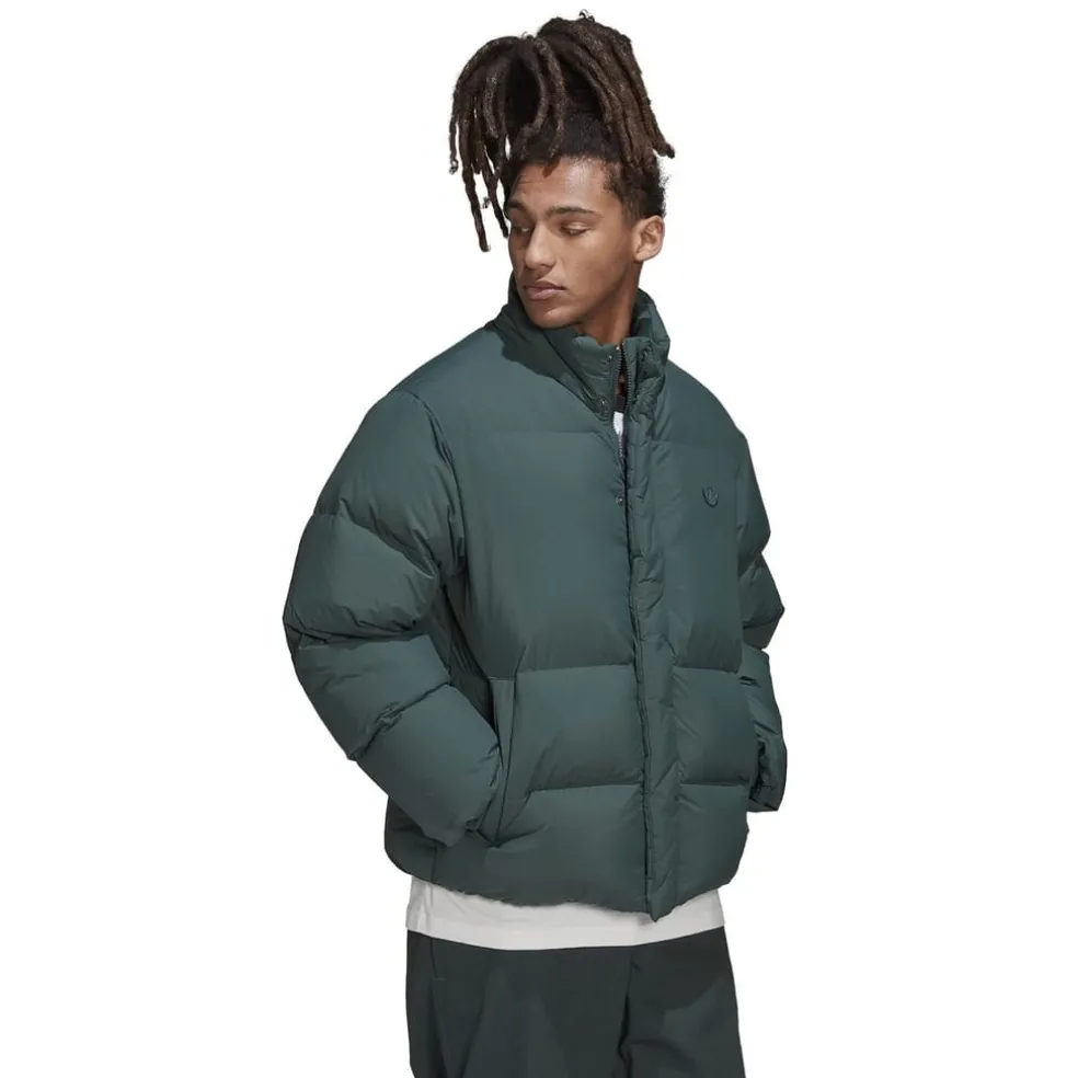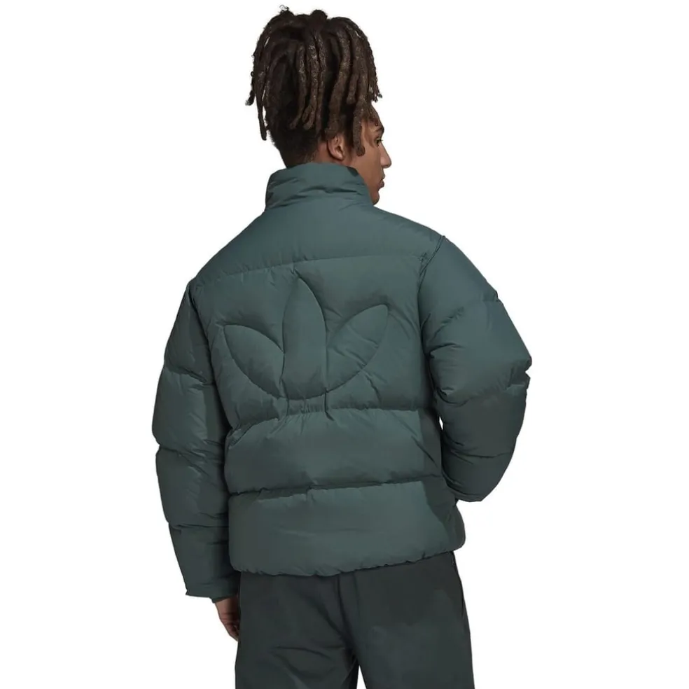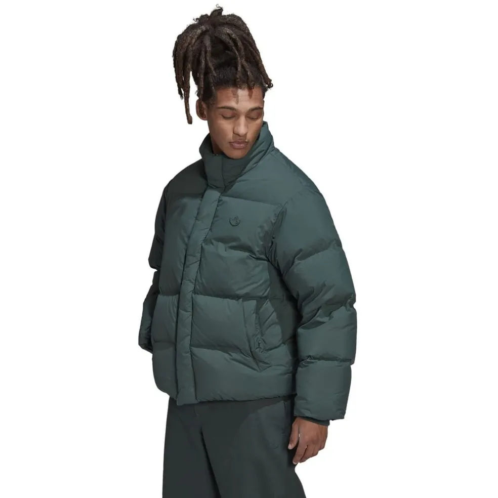 adidas Originals Collared Neck Relaxed Fit Down Jacket in Green