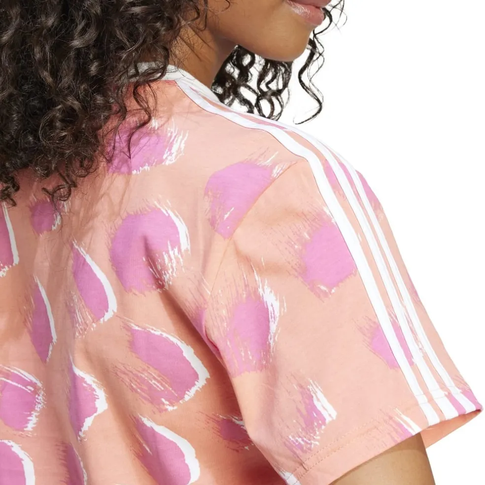 This adidas Originals cropped t-shirt features a regular fit with a crew neck and short sleeves. Adorned with an abstract pattern, it offers a modern twist on a classic design. The ribbed collar adds a touch of detail, making it a versatile addition to your wardrobe.