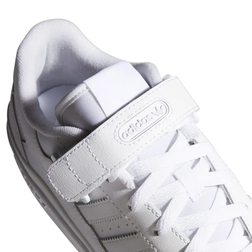 More than just a shoe, it’s a statement. The adidas Forum hit the scene in ’84 and gained major love on both the hardwood and in the music biz. This pair of the classic shoes brings back the ’80s attitude, the explosive hardwood energy and the iconic X-strap ankle design, distilled into a low top version meant for the streets.Leather upper.Lace closure with adjustable strap.Rubber outsole.
