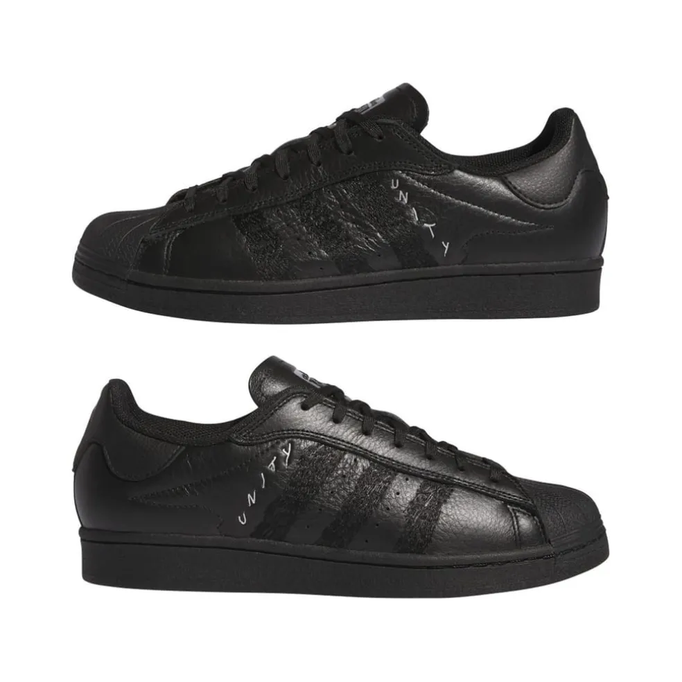 Known for their playful and inclusive approach, Unity’s role in championing the LGBTQ+ community in skateboarding is through activism and challenging stereotypes. Taking a new approach is nothing new to Unity, and the adidas Superstar ADV x Unity reimagines the iconic silhouette with a unique approach, offering a triple black premium leather colourway, redrawn by founder Jeff Cheung in a wavy expressionist style. Featuring custom-designed tonal 3-Stripes and cut lines, the Unity adds custom sockliner artwork and branding, along with moulded EVA cushioning and a grippy, flexible cupsole for skateboarding.