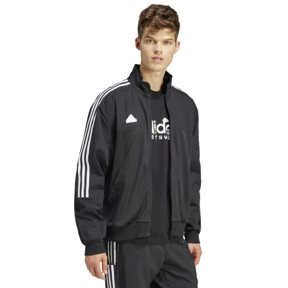 Great for roaming the streets or hitting up the local scene, this adidas Tiro track top has you covered in sporty style. Made with a mix of twill and interlock fabrics, this loose-fit zip-up brings the durability of streetwear together with the signature Tiro look. With the classic 3-Stripes down the arms and an adidas Badge of Sport logo on the chest, rep your brand all day, every day. Pockets with snaps give you storage on the go, while ribbed cuffs and hem keep the fit clean. For kicking back or kicking it up a notch, this track top delivers.