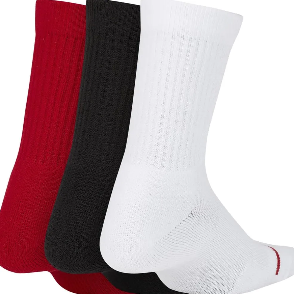Refresh your daily essentials with these Jordan 3 Pack Crew Socks by Nike. Be seen on courts with the iconic contrast Jump-man branding to cuff, featuring an elastic woven fabric aids comfort for sporting or daily casual wear. The socks are crafted from a polyester mix of fabric.