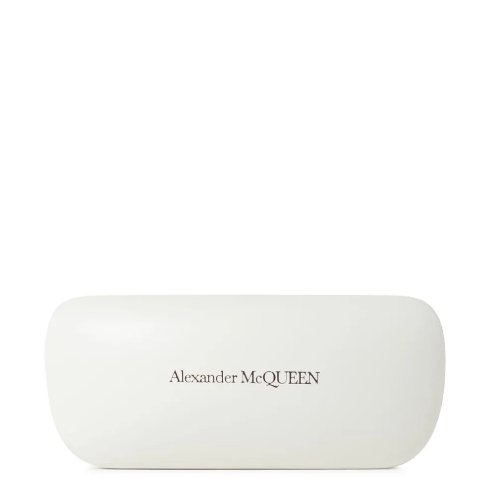– Features Alexander McQueen’s signature logo lettering and seal motif on the temples, adding a luxurious designer accent to the timeless round shape