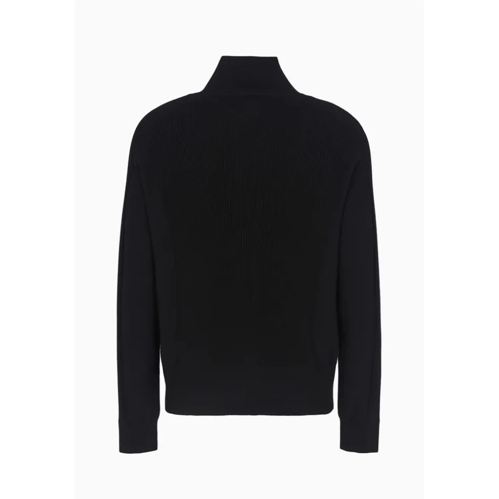 Discover the Armani Exchange cardigan sweater, featuring a turtleneck and high collar design for enhanced warmth. This top showcases a ribbed pattern, complemented by long sleeves with ribbed cuffs. The regular fit provides comfort and style, while the zipper closure adds practicality. Elevate your wardrobe with this versatile piece.