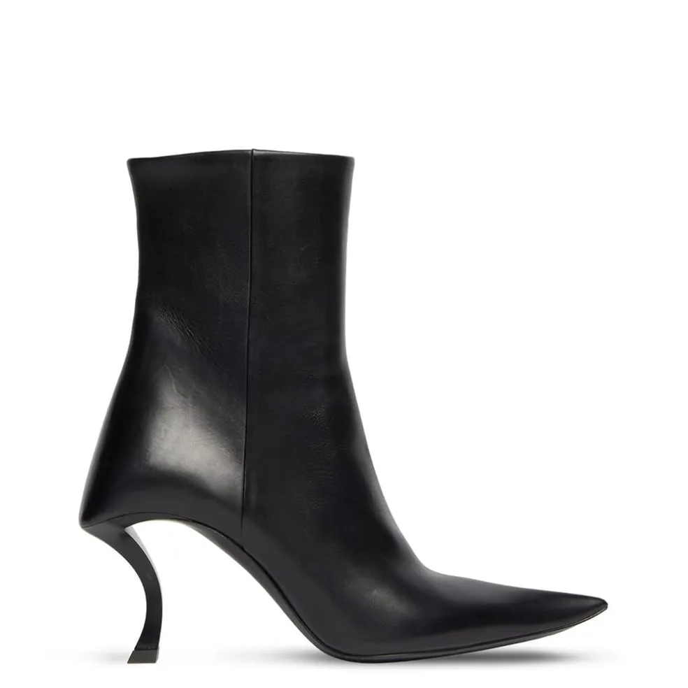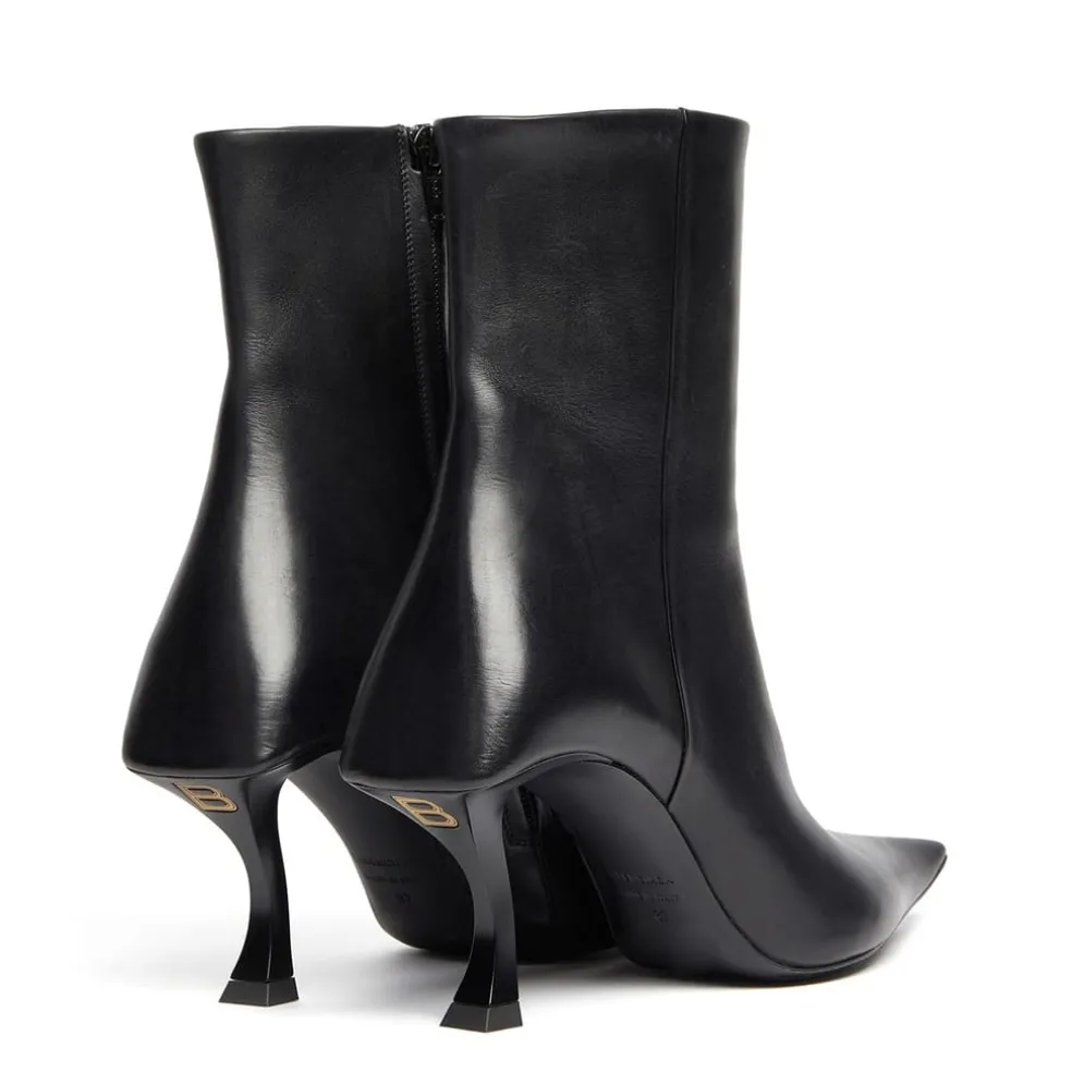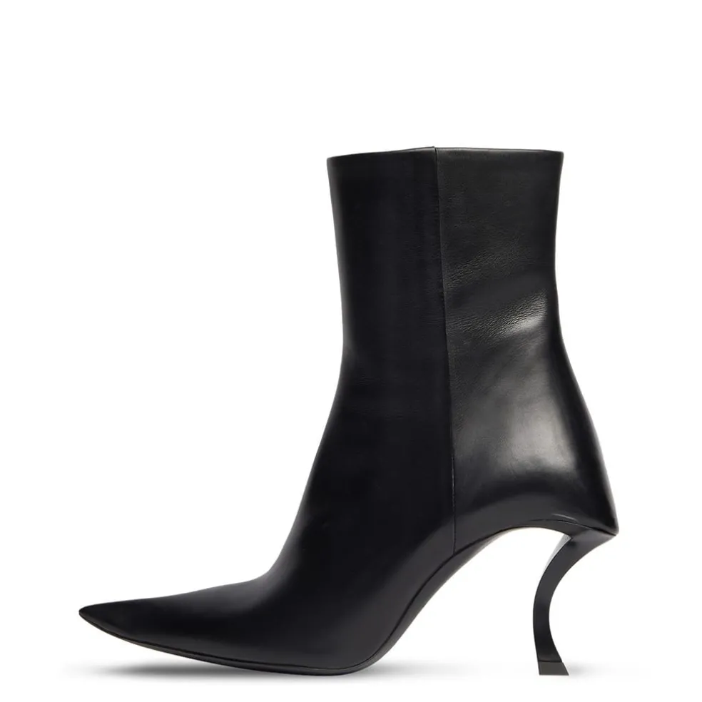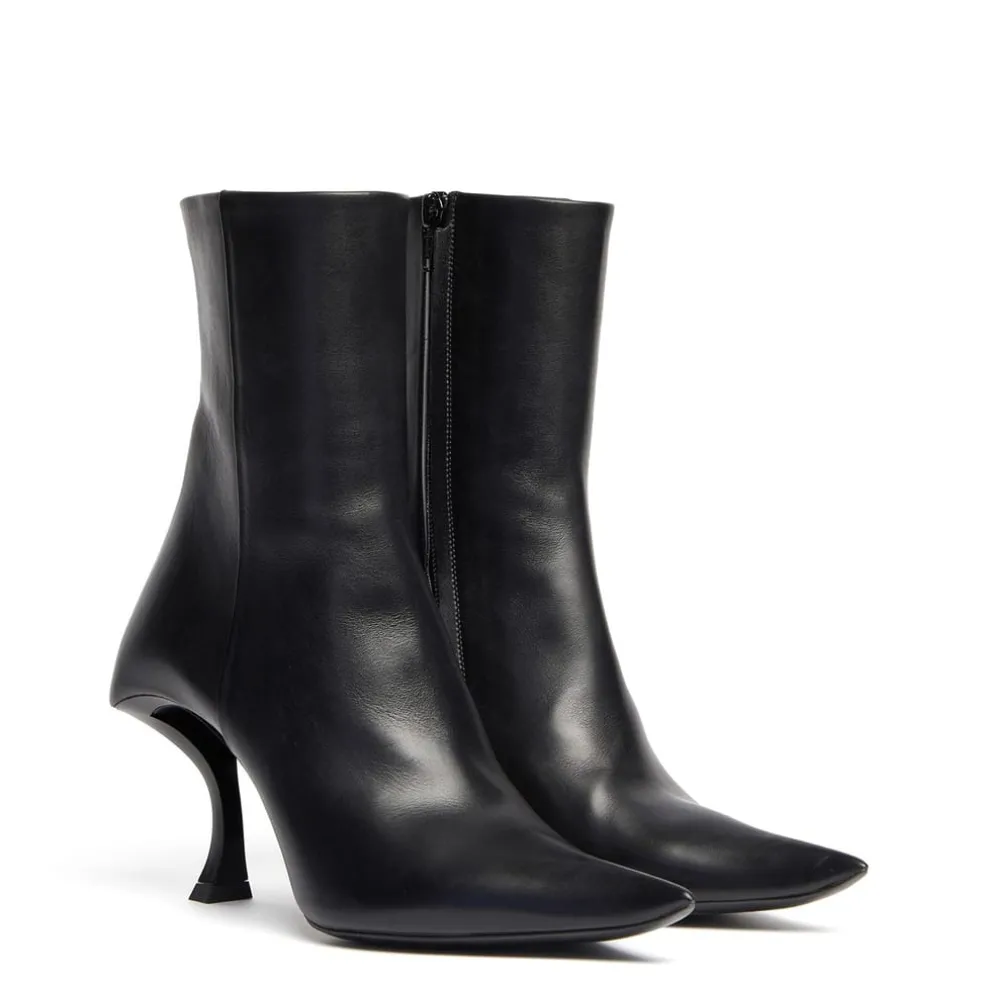 – Elongated pointed toes elongate the feet, bringing a refined elegance to your ensemble. Discreet side zip fastenings ensure a sleek look and a secure fit. Squared heel counters add an edge to the pair and deliver extra stability. Curved hourglass stiletto heels provide a contemporary take on a classic design, elevating your stature while lending a graceful note to your stride.