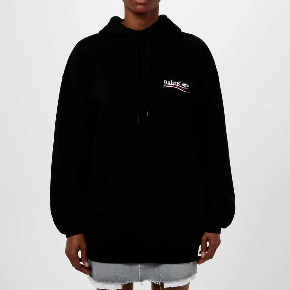 – Balenciaga’s Political Campaign logo at the chest and on the reverse assures immediate designer appreciation.