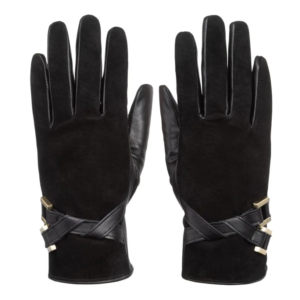 Biba Suede Leather Mix Gloves in Black