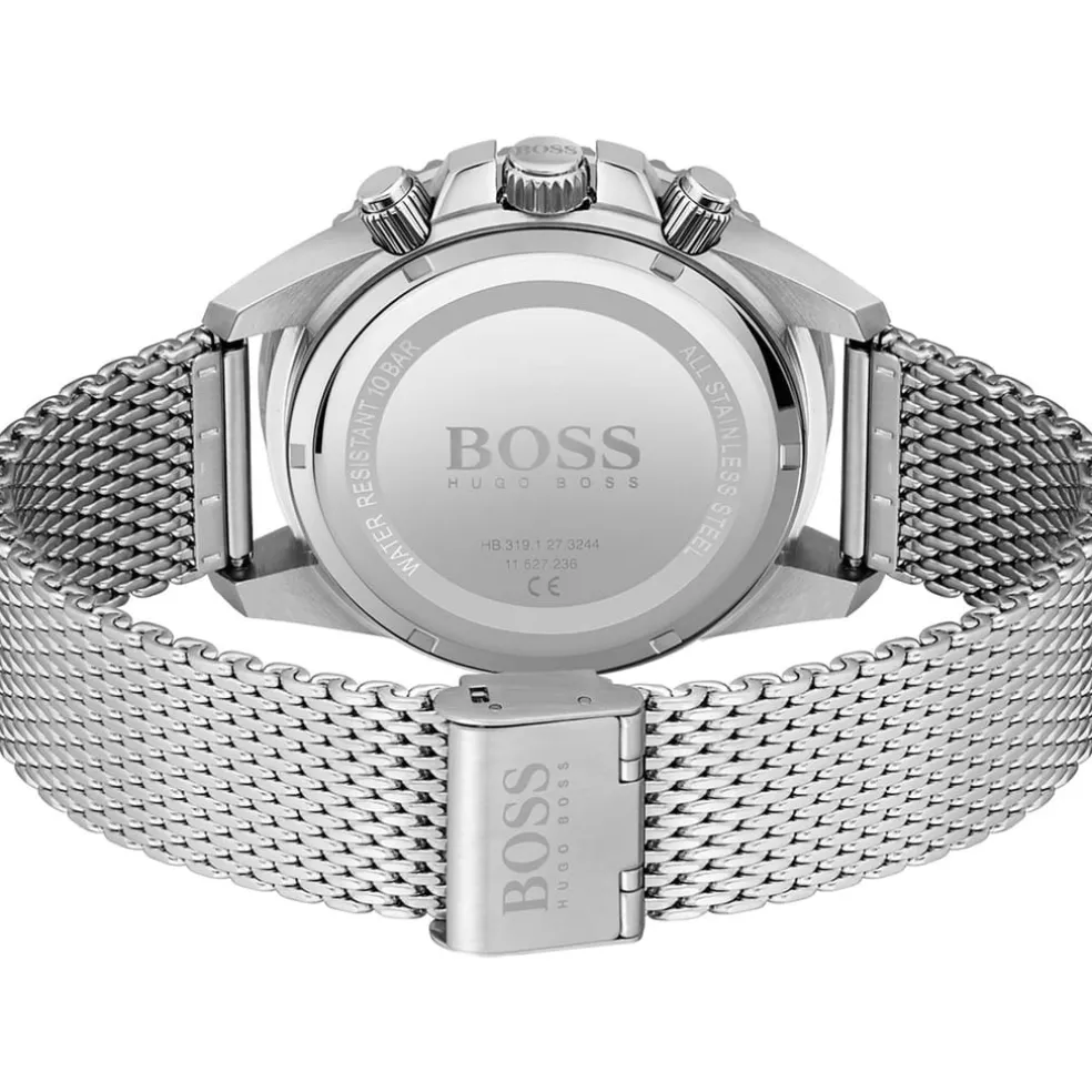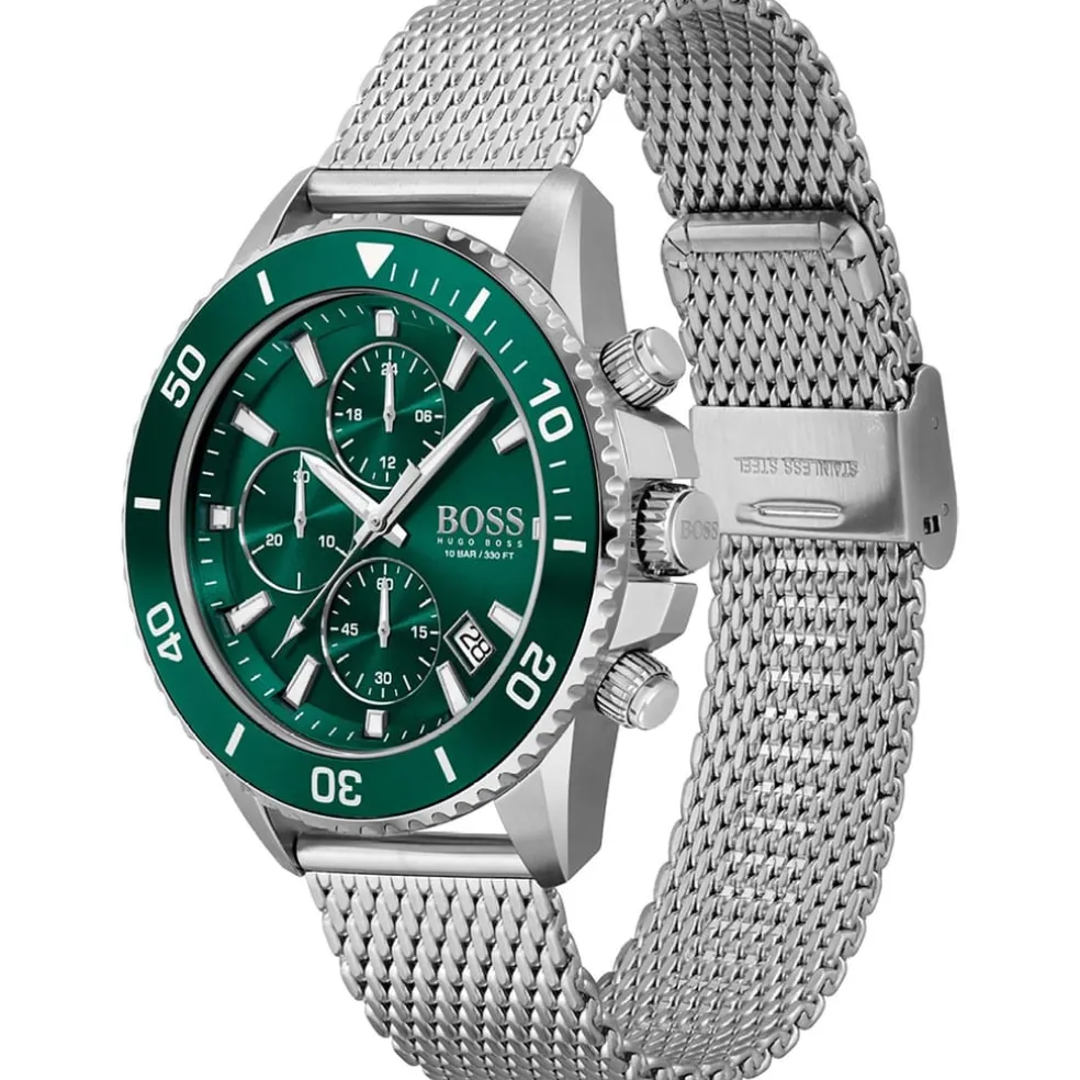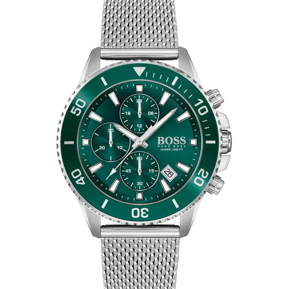 Boss Admiral Stainless Steel Green Dial Mesh Strap Watch in Silver